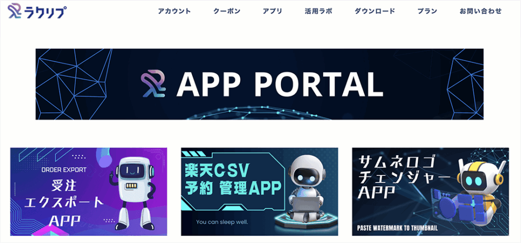 ラクリプサイトのトップページ > アプリ > 楽天CSV予約アップロード よりご利用いただけます。
